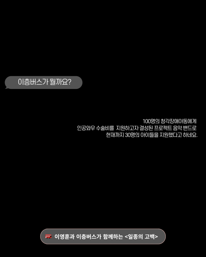 이층버스는 100명의 청각장애 아동들에게 인공와우 달팽이관 수술비를 지원하는 밴드인데요,