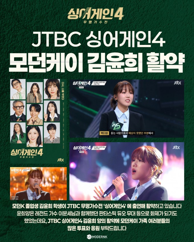 JTBC 싱어게인4 김윤희 양의 활약에 모던케이 가족 여러분들의 많은 투표와 응원 부탁드립니다