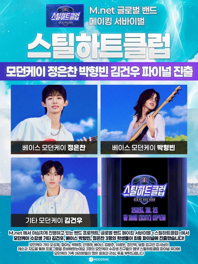 M.net 글로벌 밴드 메이킹 서바이벌 <스틸하트클럽> 모던케이 정은찬 박형빈 김건우 파이널 진출