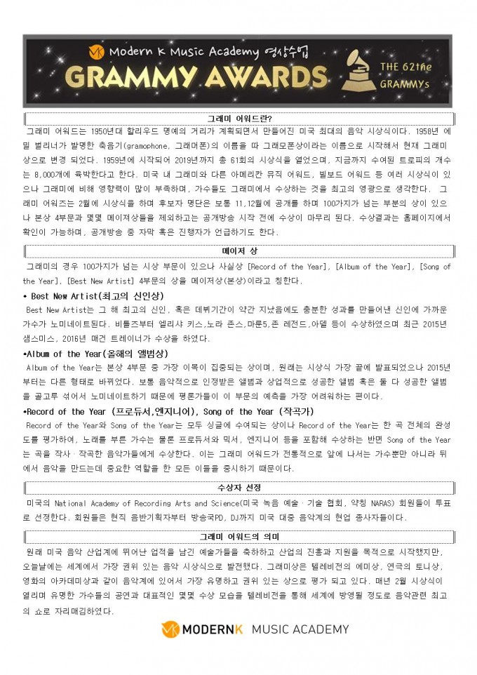 2020년 3월 모던K 아티스트 영상수업 2주차 - 그래미 어워드 특집 2주차