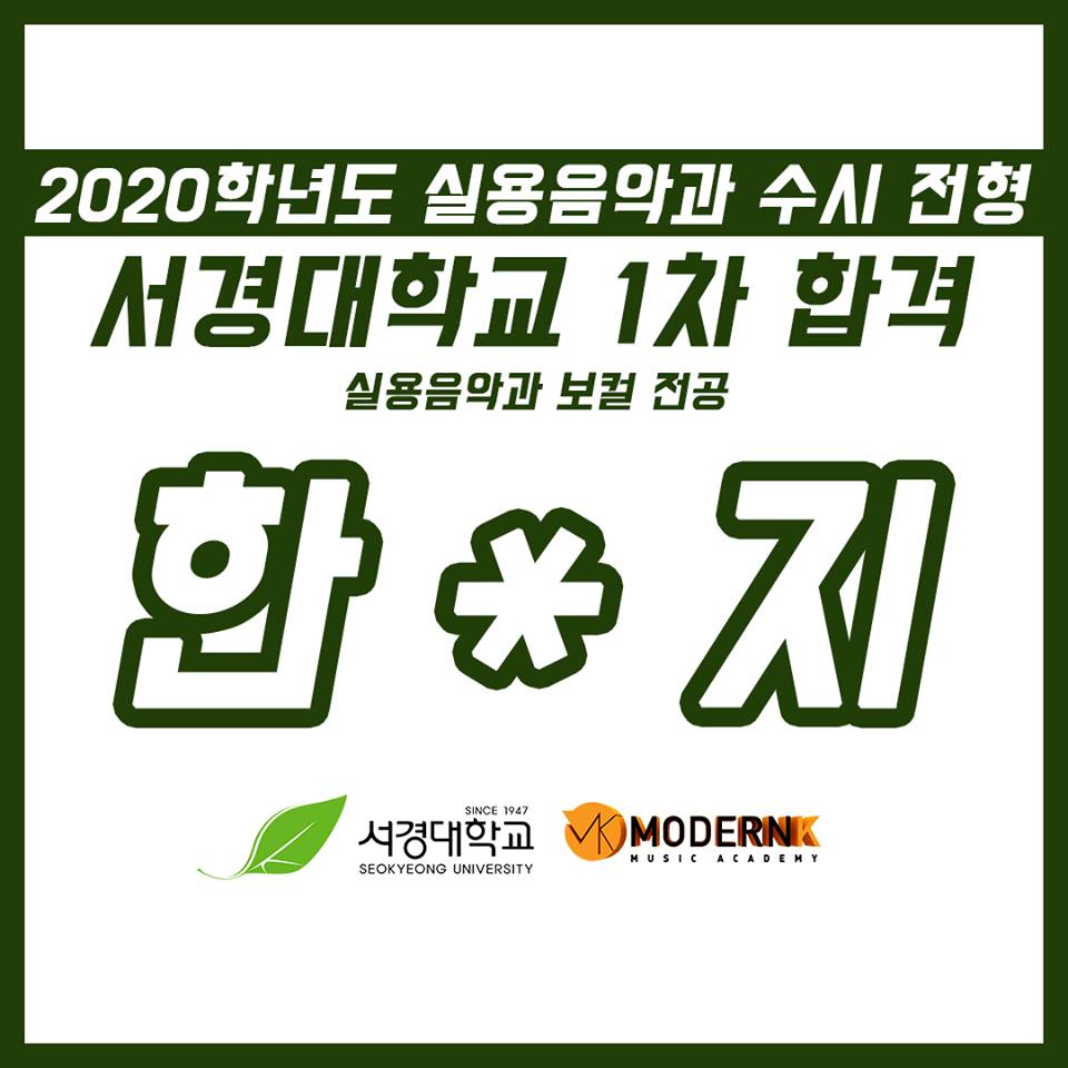 [2020학년도 서경대학교 실용음악과 1차 합격]