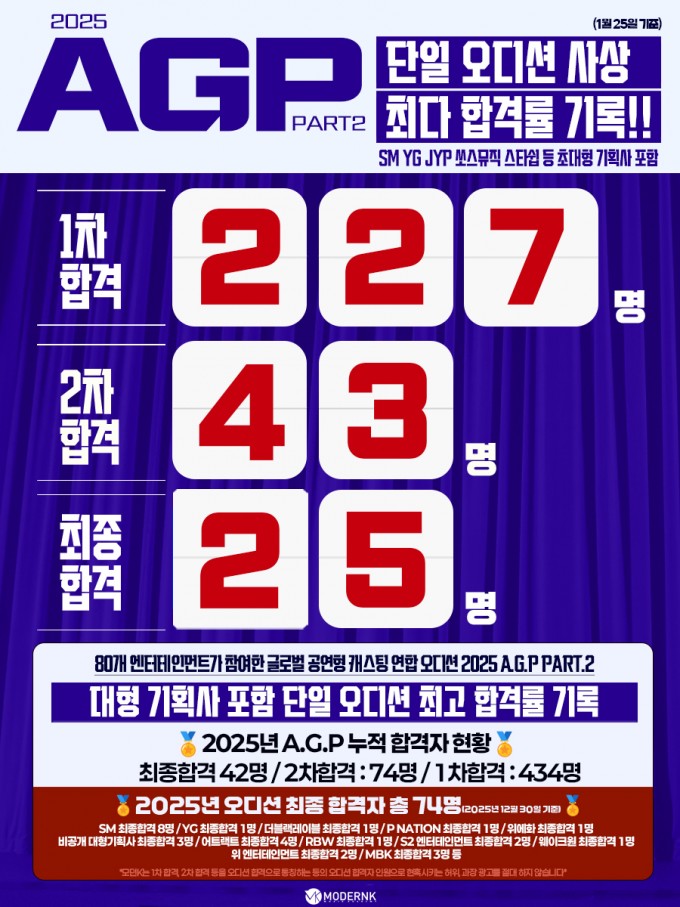 2025 A.G.P PART.2 (공연형 캐스팅 연합오디션) 합격자 현황 (2026년 1월 25일 기준)