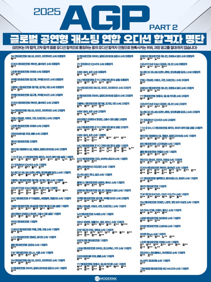 2025 A.G.P PART.2 공연형 캐스팅 연합 오디션 합격자 명단